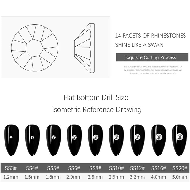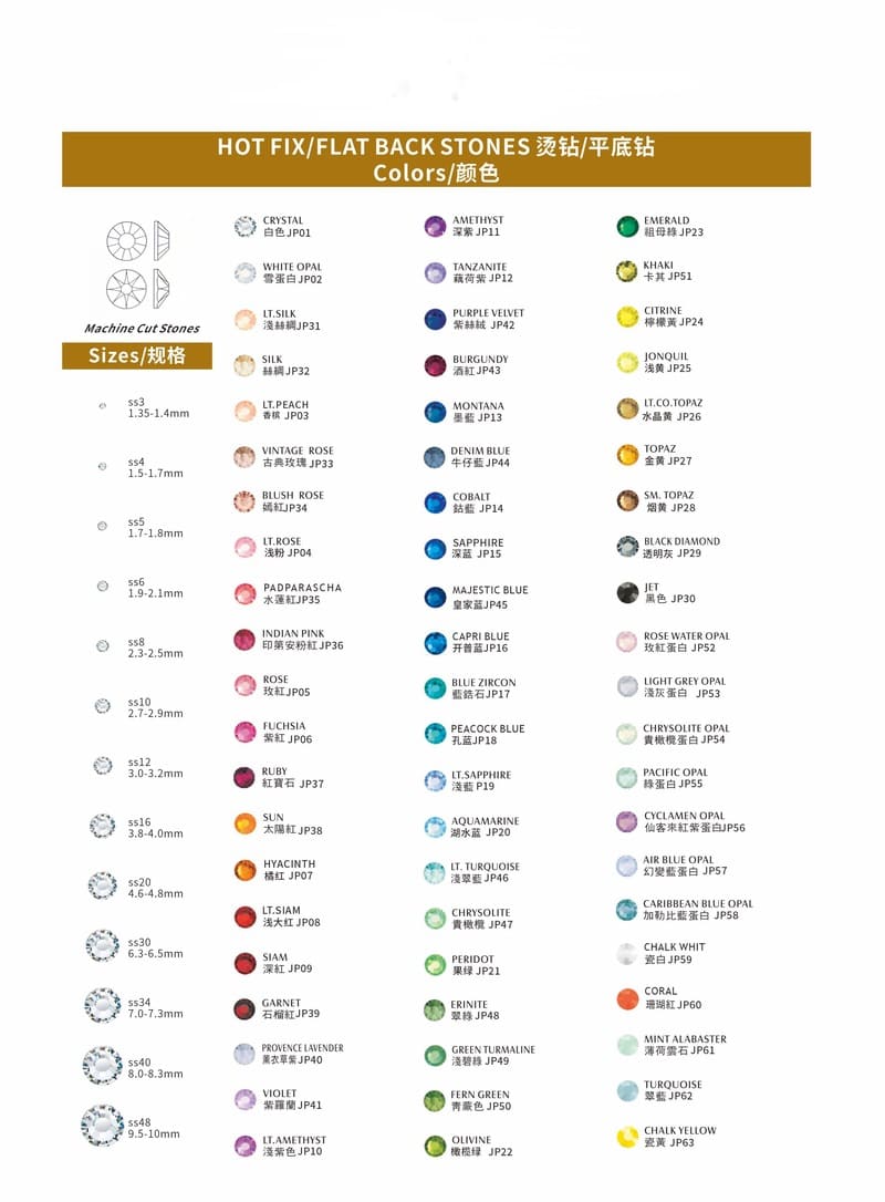 2.Rhinestone Size Chart: please find the available sizes for your reference.